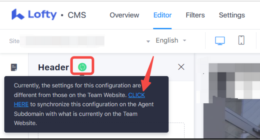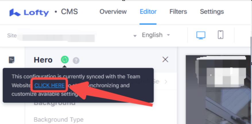 If you would like to stop synchronizing the hero block from the Parent Website to the Agent Subdomain, click on the green "sync" icon and then the hyperlinked CLICK HERE: